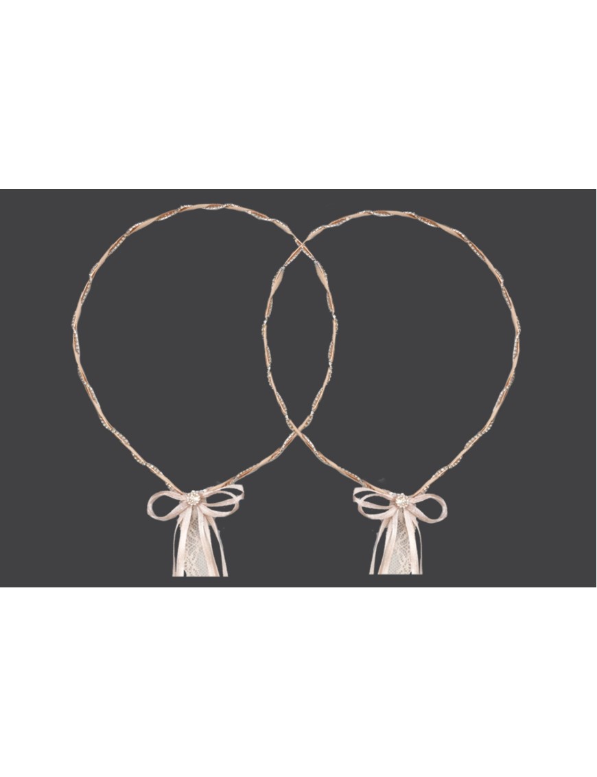 Στέφανα Γάμου ρομαντικά ροζ βέργα στολισμένη με κορδόνι σάπιο μήλο και στρας S313190
