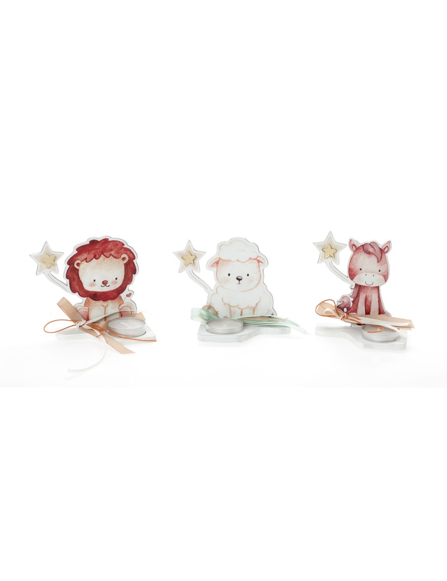 Χειροποίητη μπομπονιέρα ξύλινη φιγούρα με ρεσώ με Πουγκάκια από Γάζα χρώμα της επιλογής σας είτε Γάζα είτε χρωματιστό τούλι.