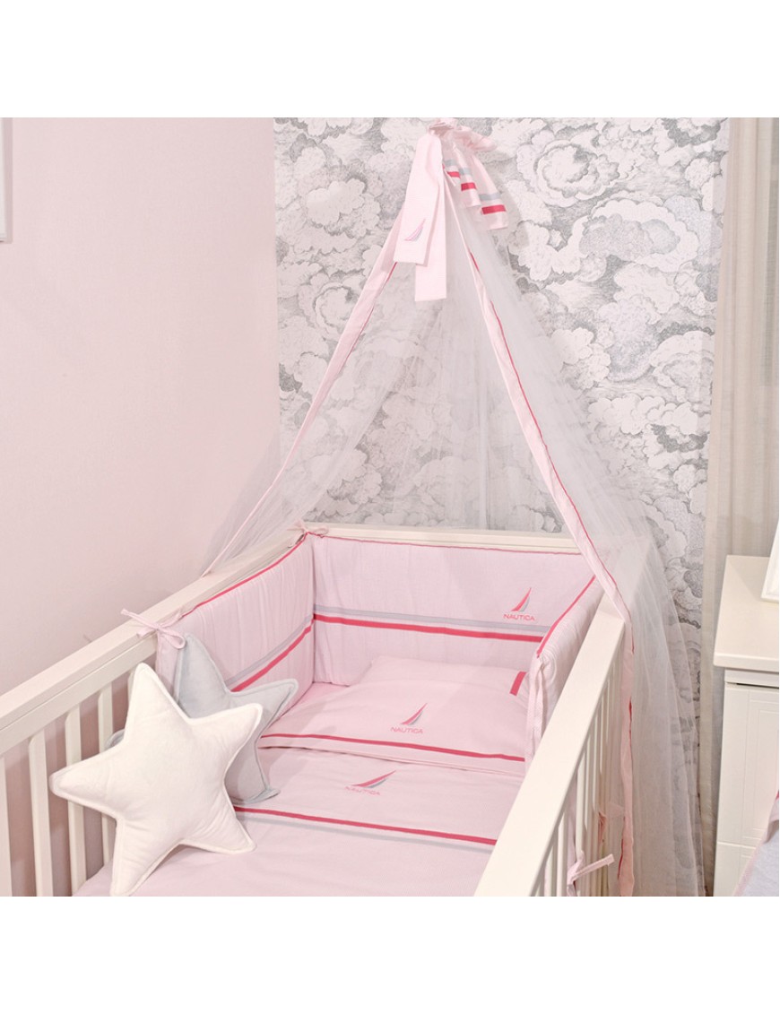 Σετ προίκας για την κούνια του μωρού σας σε ροζ χρώμα και ριγέ σχέδιο από την εταιρία Nautica. Η σύνθεση του αποτελείται από 100% βαμβάκι 154 κλωστών που το καθιστά απαλό και ανθεκτικό. Το σετ περιλαμβάνει ένα πάπλωμα λευκό με γέμιση σιλικινούχο πολυέστερ βάρους 300gsm, μία παπλωματοθήκη με φερμουάρ, μία πάντα και μία κουνουπιέρα.Πλύσιμο σε μέγιστη θερμοκρασία νερού 30C.